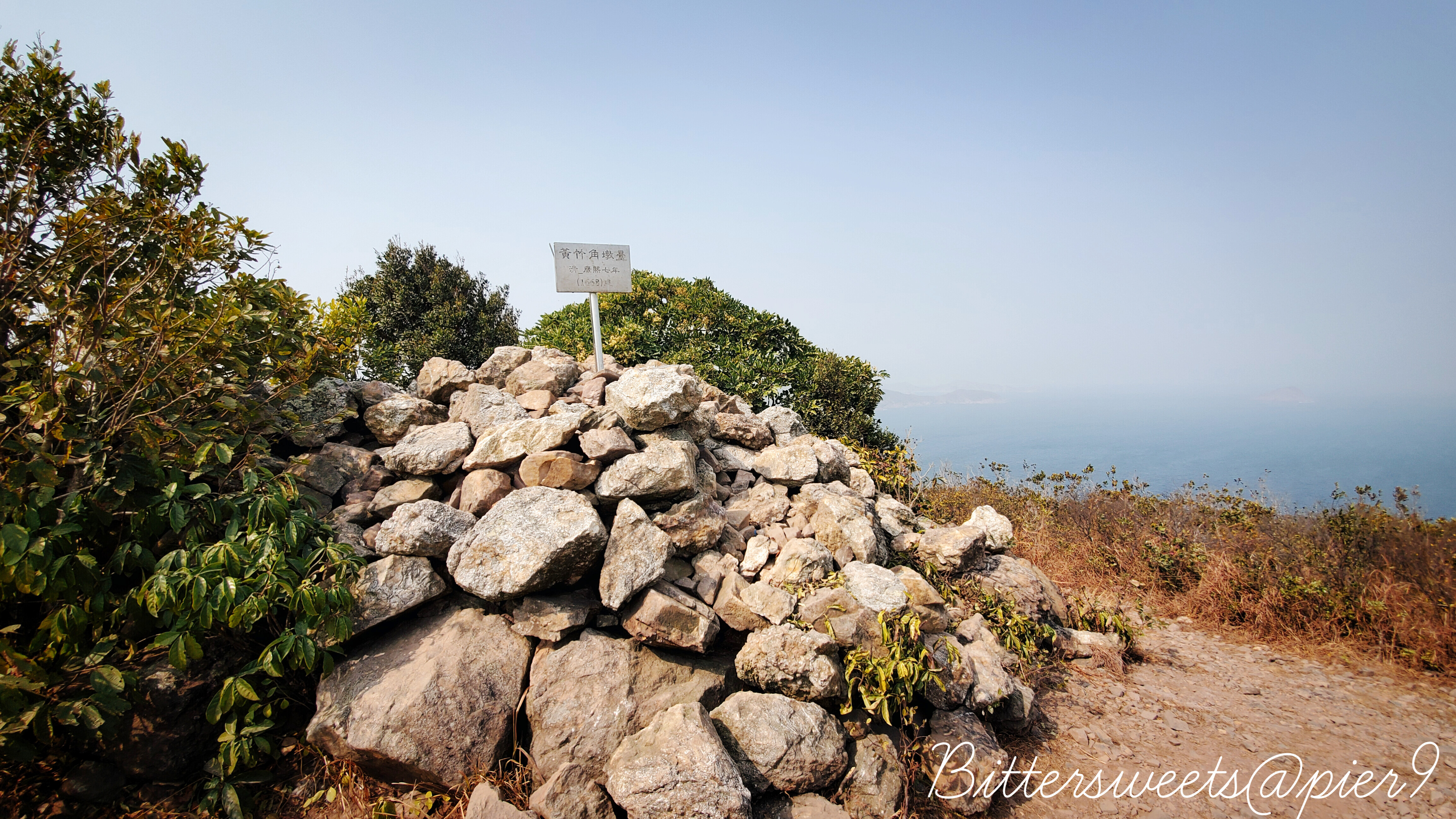 之後經過黃竹角墩臺,是用石頭堆疊而成的臺,寫有「清 康熙七年(1668)年建」 。