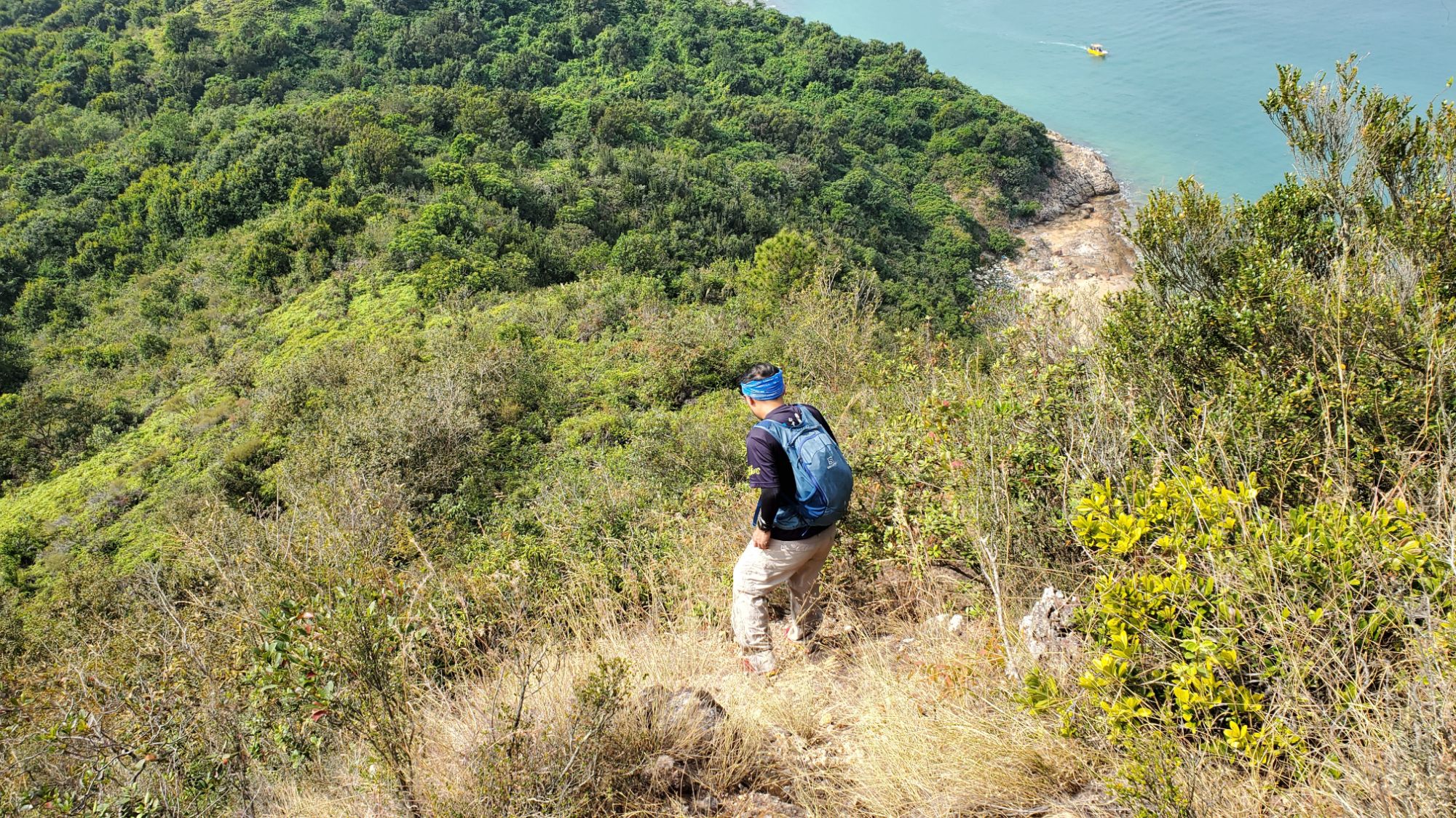 找到入口後上山的路清晰得多,景色越見開揚,回望的吉澳,左面是澳背塘內灣,右邊是東澳灣, 就像一個「T」字 的地形。